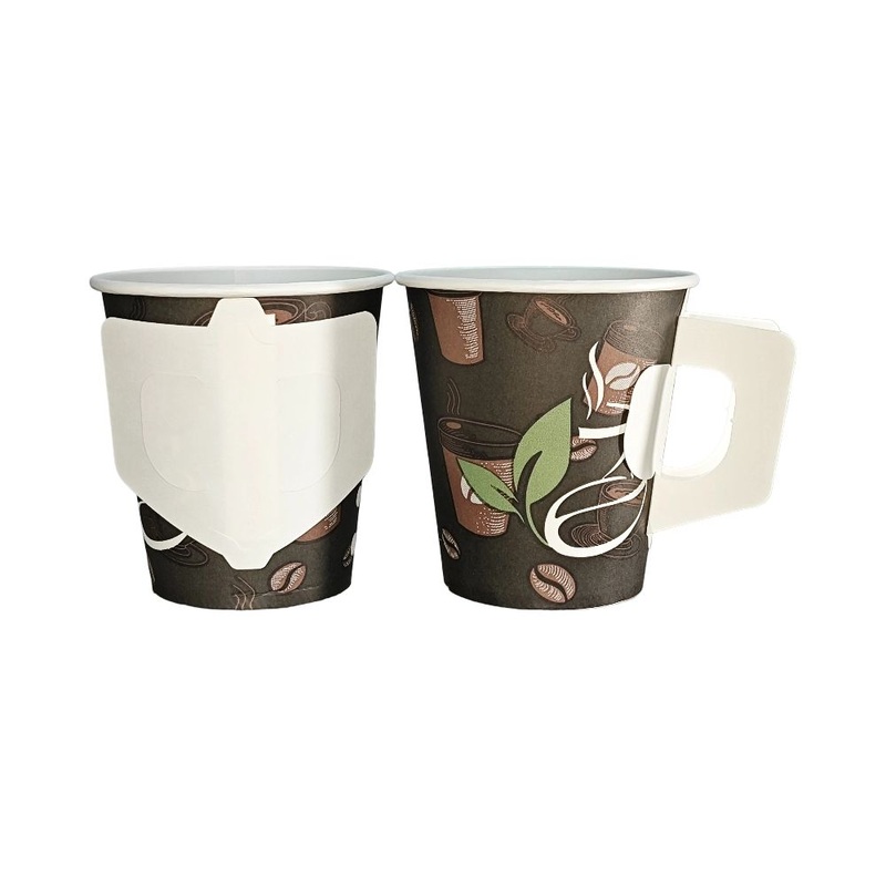 Anhui Paper Cup Manufacturer Custom 7oz Disposable Cheap Coffee Tea Paper Cup Mug with Handle – Coffee Mugs with Plastic Lids and Custom Logo Printed Mugs price