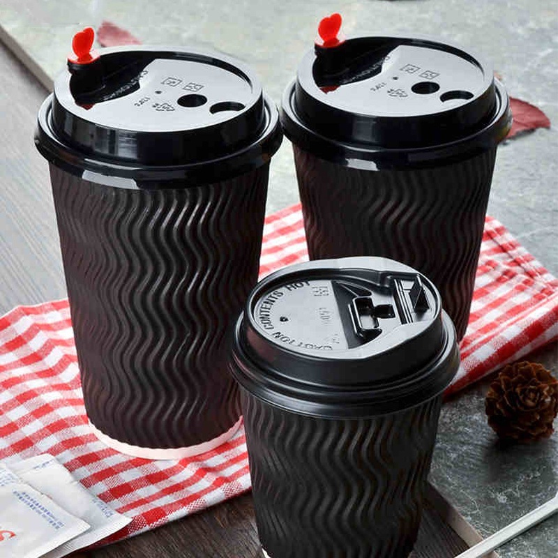 Black Ripple Wall Coffee Paper Cups with Lids – Paper Cup and Coffee Cup price