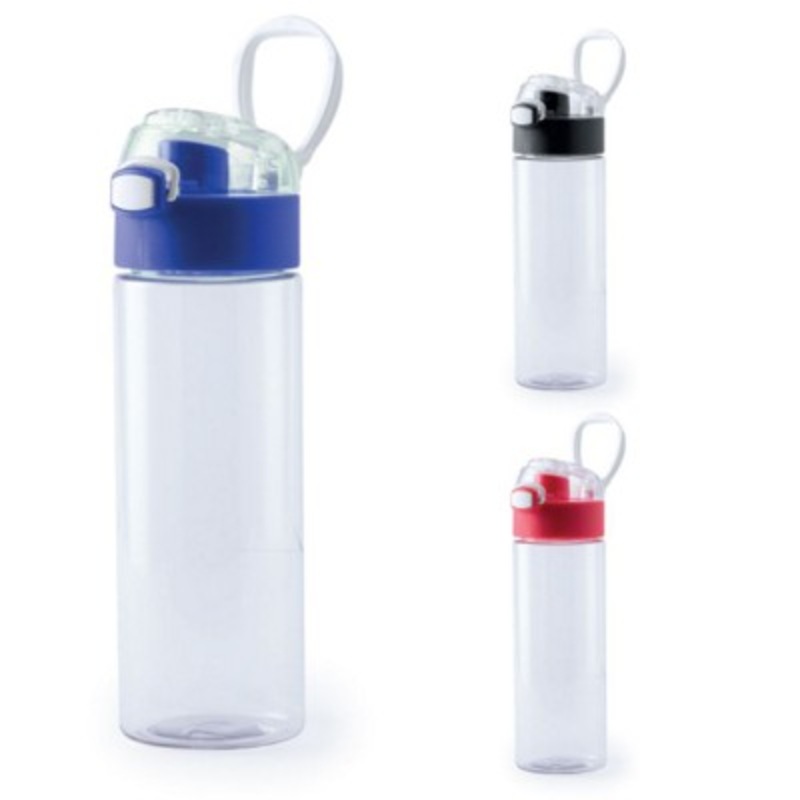 High Quality And High Capacity Bottle -580ml-, With Body In Heat Resistant (70c), Bpa Free, Tritan Material. Body In Transparent Colour, With Safety Screw-On Cap In A Wide Range Of Vivid Colours. Easy-Opening Push Button, With Resistant Carrying Handle. Colours: Black, Red, Blue. Minimum Quantity: 50