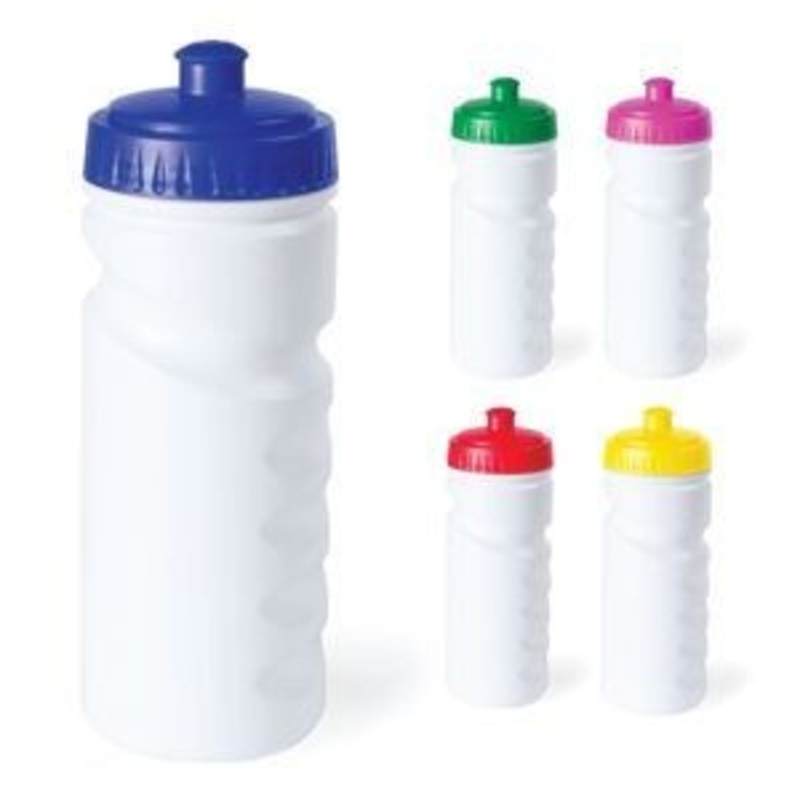 Description 500ml PVC Drinking Bottle With Screw Top Lid And Finger Grip. Colours: Red, Green, Yellow, Pink, Blue. Minimum Quantity: 100