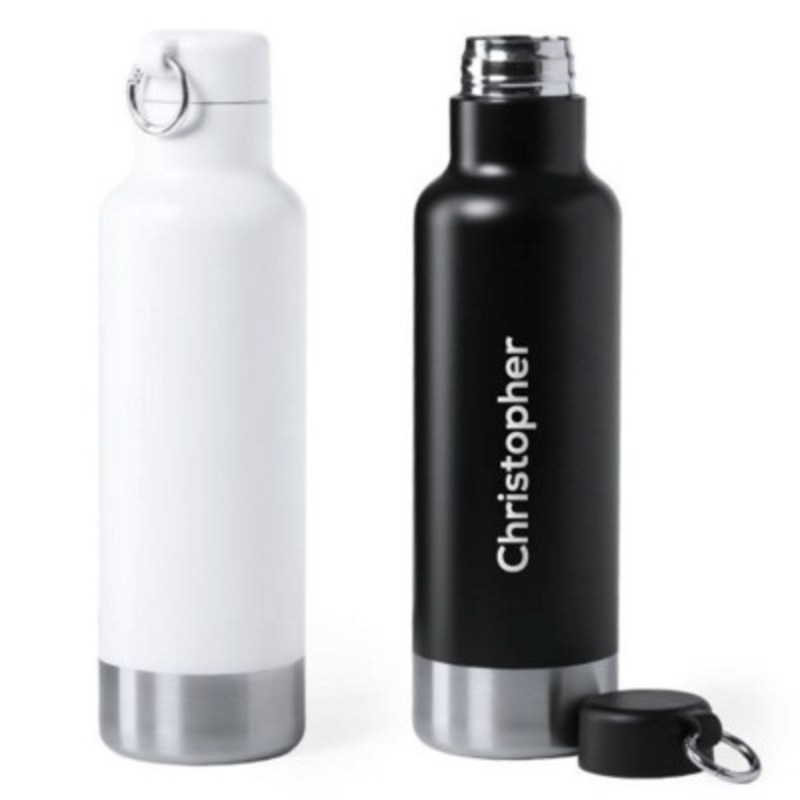 Single Walled 750ml Stainless Steel Bottle Supplied With Matching Colour Lid. This Modern Flask Is Also Supplied With A Carrying Ring For Attaching To A Commuters Backpack, Ideal For Use While Travelling, At Work, School, University Or Hiking. Eco-Friendly Professionals Can Reduce Their Single Use Plastic Waste With This Reusable Metal Drinkware. Suitable For Cold Drinks Only. Presented In An Individual Recyclable Box. Colours: White, Black. Minimum Quantity: 25
