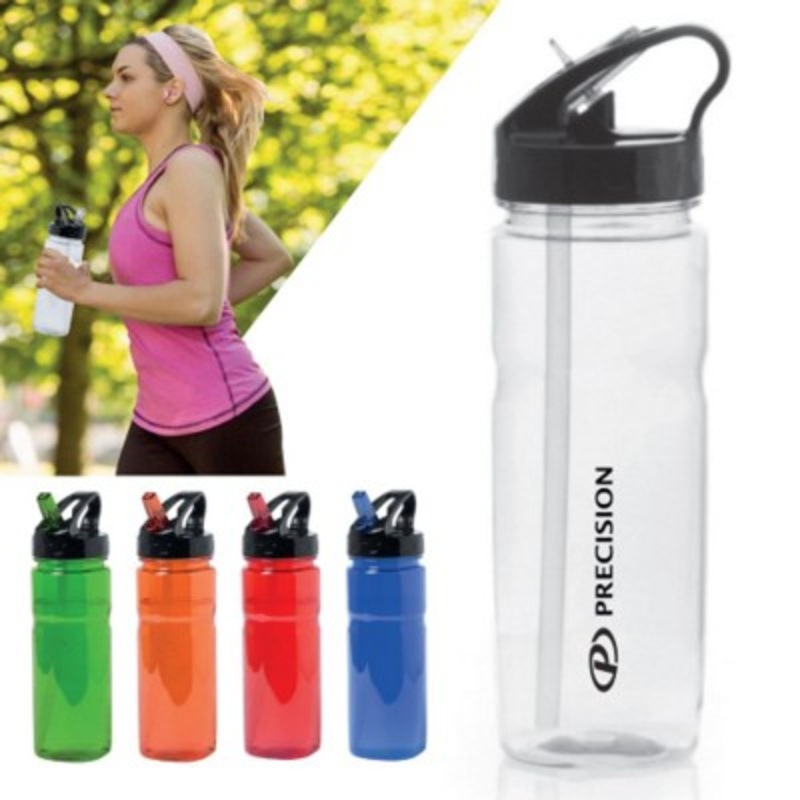 Description Screw Cap 650ml Drinking Bottle With Flip Closure Spout. Drink Easily Using The Built In Straw. Made From Durable Tritan Plastic. Perfect For Travel And Sports. Colours: Transparent, Red, Green, Orange, Blue. Minimum Quantity: 25