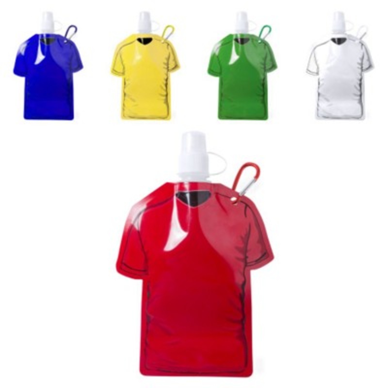 Description Sport Shirt Shaped Pet 500ml Drinks Bottle With Carabiner Clip. Colours: White, Red, Green, Yellow, Blue. Minimum Quantity: 250