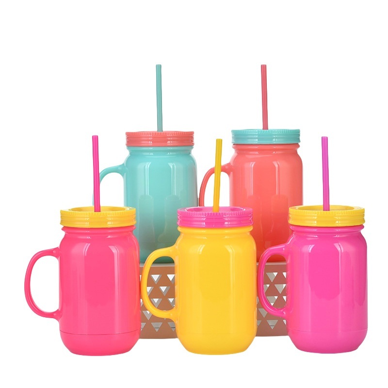 Custom Wide Mouth 20 Oz Double Layer Insulated Drink Mug Amazon Top Seller Beverages Tumbler Handle Plastic Mason Jar Cup with Lids and Straws – Insulated Drink Mug and Beverages Tumbler price