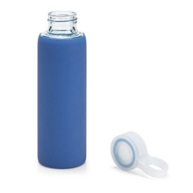 Borosilicate Glass Bottle with Pp Lid. This Bottle has a Silicon Protection. It has a Capacity Up to 380 Ml. Supplied in a Box. 58 x 191 Mm; Certificates Available: Food Safety, Bpa Free Minimum Quantities Apply.