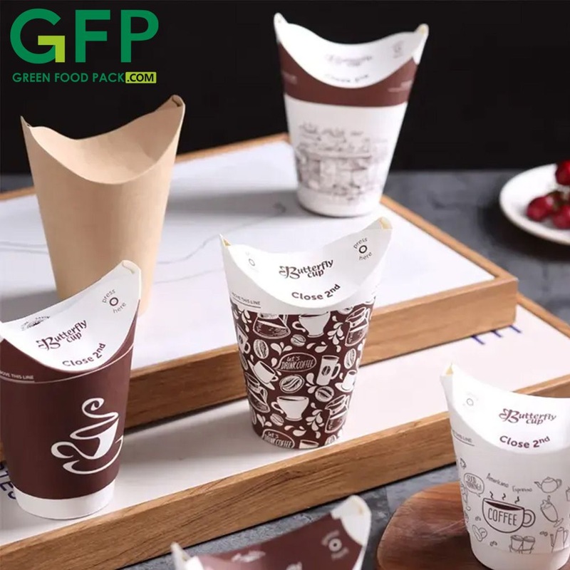 Disposable Custom Paper Cup Drinking Cup Water and Oil Proof French Fries Butterfly Paper Cup – Paper Cup and Coffee Cup price