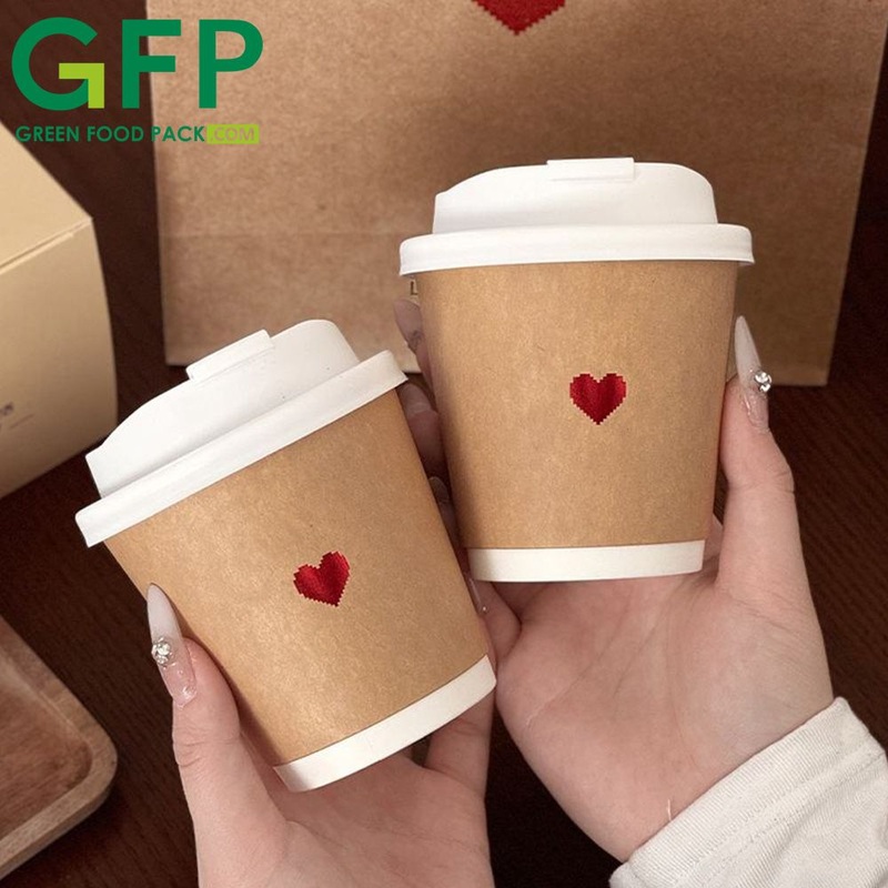 Double Wall Kraft Paper Coffee Cup with Lid Disposable Take-out Baking Packaging Hot Milk Tea – Paper Cup and Coffee Cup price