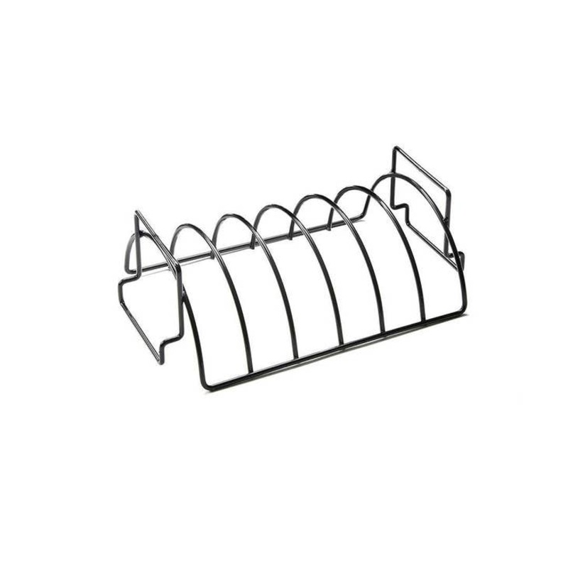 Reverse your style with the dual rib rack & roasterPosition rack upright to cook 6 slabs of ribs, or flip it over to cook turkey, chicken & roasts. Made of carbon steel, the rack's elevated design allows air circulation for even-browning and its PTFE/PFOA