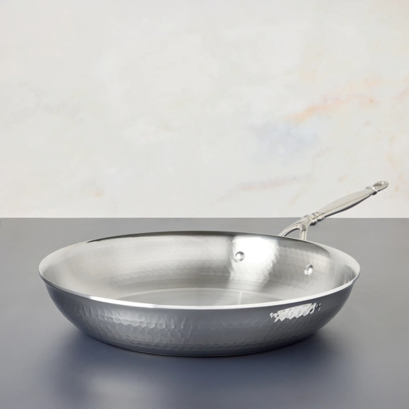 Prima, meaning first in Latin, is the first collection in the world to bring the traditional copper hammering to clad stainless steel a material appreciated by chefs and home cooks for its fast and uniform heat distribution, and its practical, induction-suitable and easy-to-clean surface. In this Collection, functionality meets Italian flair hammered by our master coppersmiths in true Ruffoni tradition and mirror polished, the Opus Prima collection features silver plated finials that celebrate our shared culinary history and traditions.