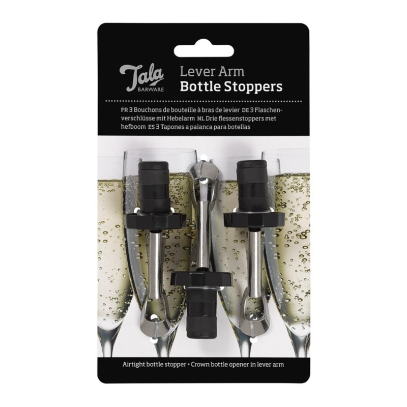 Tala Lever Arm Bottle Stoppers Pack of 3Keep Your Drinks Fresh for Longer!Extend the freshness of your favorite beverages with the Tala Lever Arm Bottle Stoppers. This set of three stoppers is designed to create an airtight seal in bottle necks, ensuring t